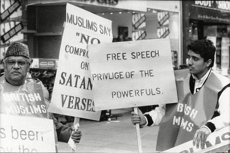 Note the smug tone. It didn’t last long. Eight days later, Rushdie’s life changed forever when Ayatollah Khomeini issued a fatwa for his death. Rushdie would spend the next decade in hiding and the rest of his life venturing out in public only with bodyguards. By 2022 he had relaxed a little too much and was maimed.