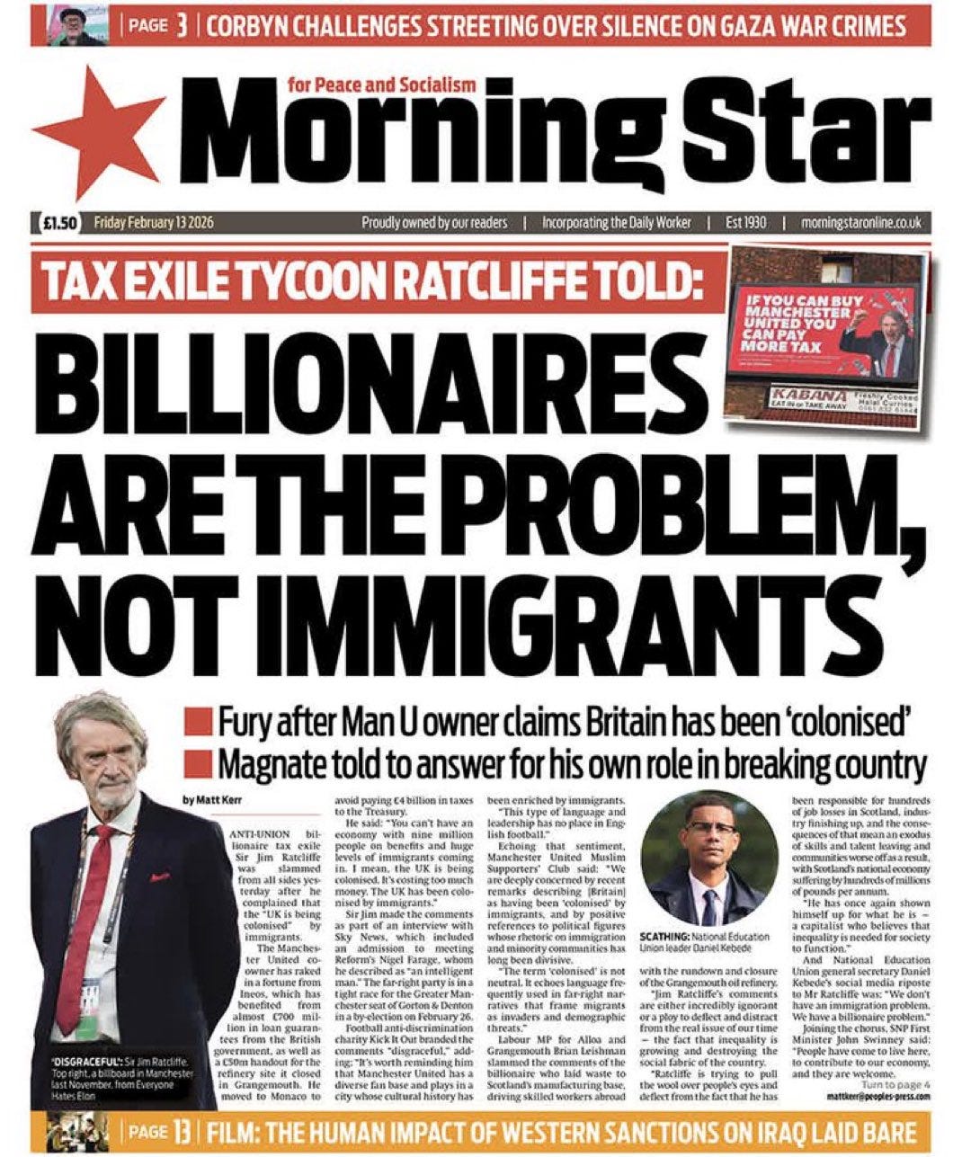 Immediately, a storm erupted. Politicians (including Rachel Reeves, the Prime Minister, and the mayor of Ratcliffe’s home city Manchester) rushed to voice their disgust at what he had said. The loathsome Emily Maitlis came out with some typically stupid and loxist remarks, saying that Britain had an empire therefore the dissolution of the British people is (somehow) inevitable. But across the entire mainstream media, there was near-total lockstep. From the Morning Star to the Times to Have I Got News For You, from Ash Sarkar and Owen Jones to Piers Morgan, all were united in one purpose: discredit Jim Ratcliffe.